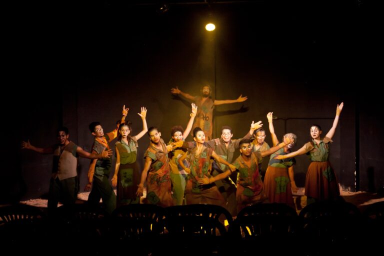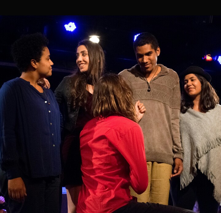 Exercício coletivo que buscou introduzir os alunos a experiência teatral utilizando fragmentos de textos e autores importantes no mundo artístico, criando um coletivo físico para ilustrar o enredo.